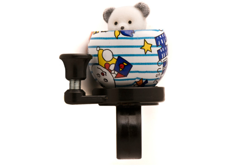 Красивый, стальной корпус звонка, внутри которого сидит медвежонок. Удобный рычаг-ударник на мягкой пружине позволяет без труда звонить даже ребенку.