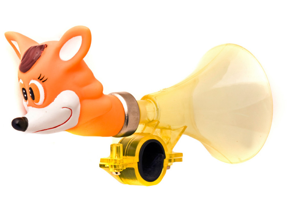 Резиновая, веселая игрушка - рыжая лисица предупредит прохожих о приближении велосипеда. Пластиковый корпус и крепление которое подходит практически на все стандартные велосипедные рули.