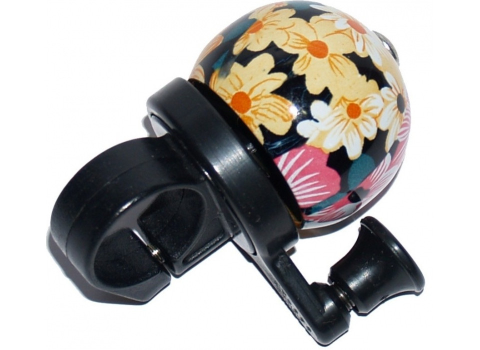 Звонок с универсальным креплением на руль, в стальном корпусе и пластиковой ручкой на пружинке. Очень компактный и звонкий. На корпус нанесен красивый рисунок.