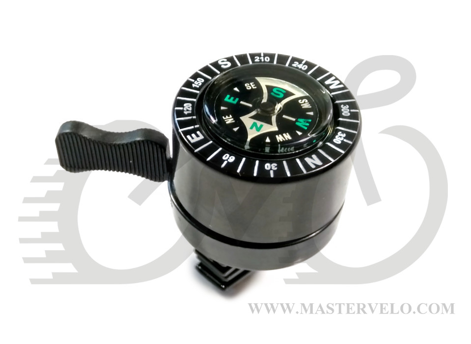 Звонок с универсальным креплением на руль, в стальном корпусе, с копмпасом и пластиковой ручкой. Очень компактный и звонкий. Не занимает много места на руле велосипеда.