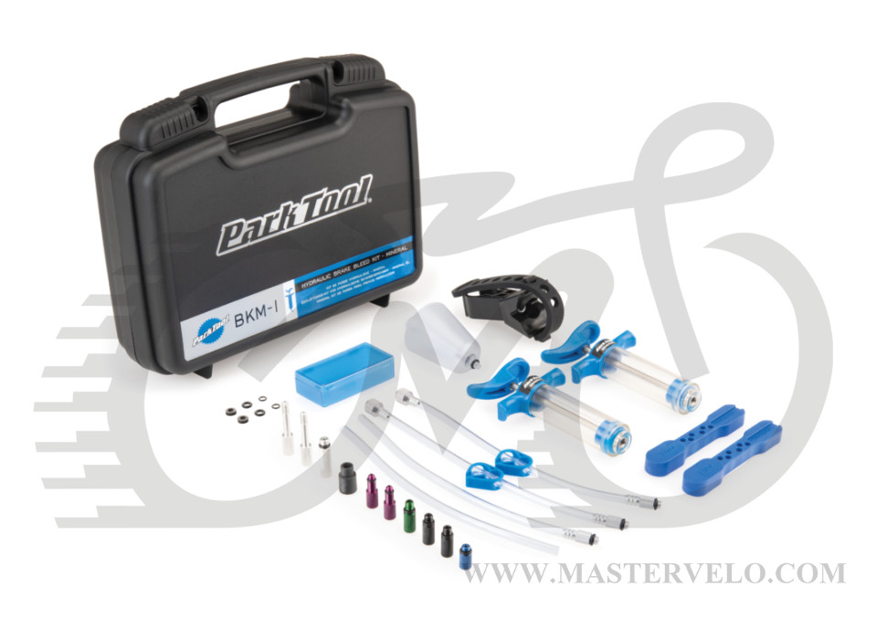 Комплект Park Tool BKM-1 для прокачки гидравлических тормозов на минеральном масле. Подходит для производителей Shimano®, Magura®, Clarks®, Promax®, Tektro®, TRP® но других систем на основе минерального масла.
