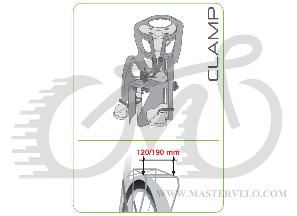 Подходит к большинству типов велосипедов. Имеет лёгкосъёмный механизм. С мягкой прокладкой, ремнями безопасности и защитой ног от попадания в спицы. Сама форма сидения обезопасит ребёнка от боковых ударов. Имеет Европейский сертификат качества TUV.