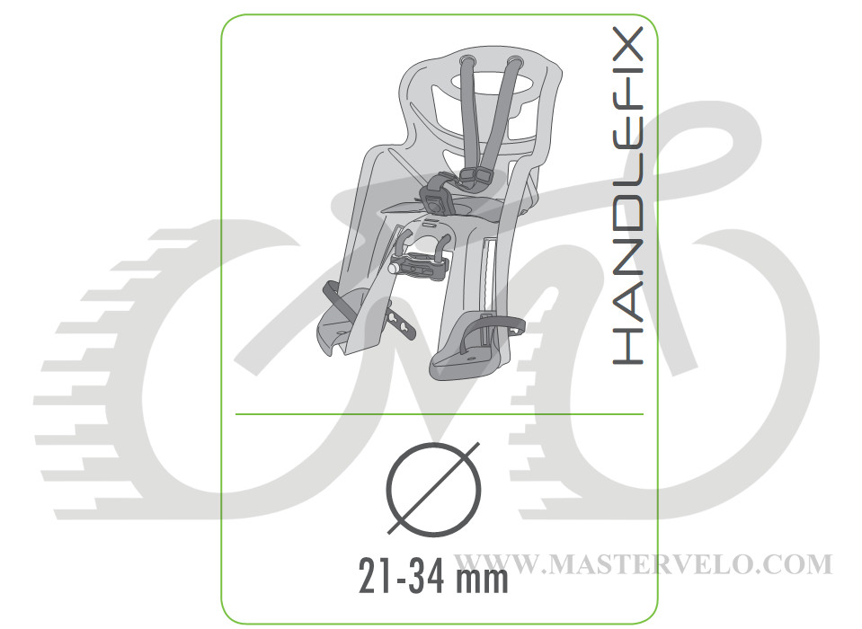Подходит к большинству типов велосипедов. Имеет лёгкосъёмный механизм. С мягкой прокладкой, ремнями безопасности и защитой ног от попадания в спицы. Сама форма сидения обезопасит ребёнка от боковых ударов. Имеет Европейский сертификат качества TUV.