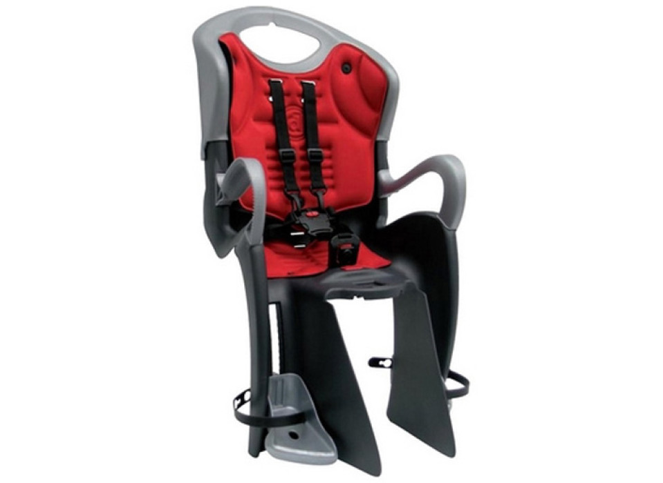 Характеристики и особенности: закрепляется на раму велосипеда под седлом с помощью специального крепления; подходит к большинству типов велосипедов; имеет легкосъемный механизм, мягкую прокладку, ремни безопасности и защиту ног от попадания в спицы; сама форма сидения обезопасит ребёнка от боковых ударов; спинка сидения регулируется по высоте; угол наклона сиденья тоже может регулироваться.