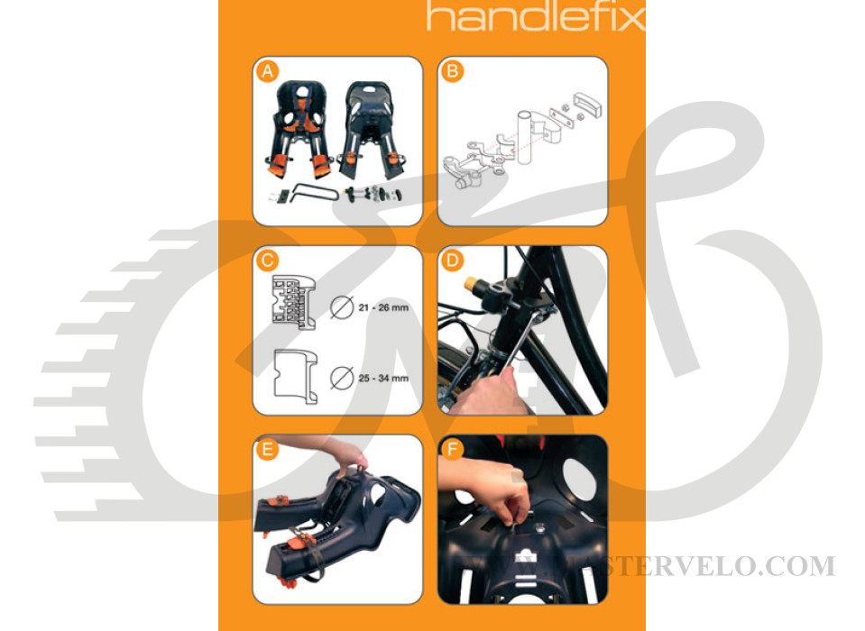 Крепление Handlefix предусматривает установку на раму велосипеда спереди велосипедиста и рассчитано на ребенка весом до 15 кг. Благодаря консольному креплению улучшаются амортизационные характеристики сидения и появляется возможность быстрого монтажа/демонтажа сидения, но в то же время ухудшается управляемость велосипеда, что требует от велосипедиста особой бдительности.