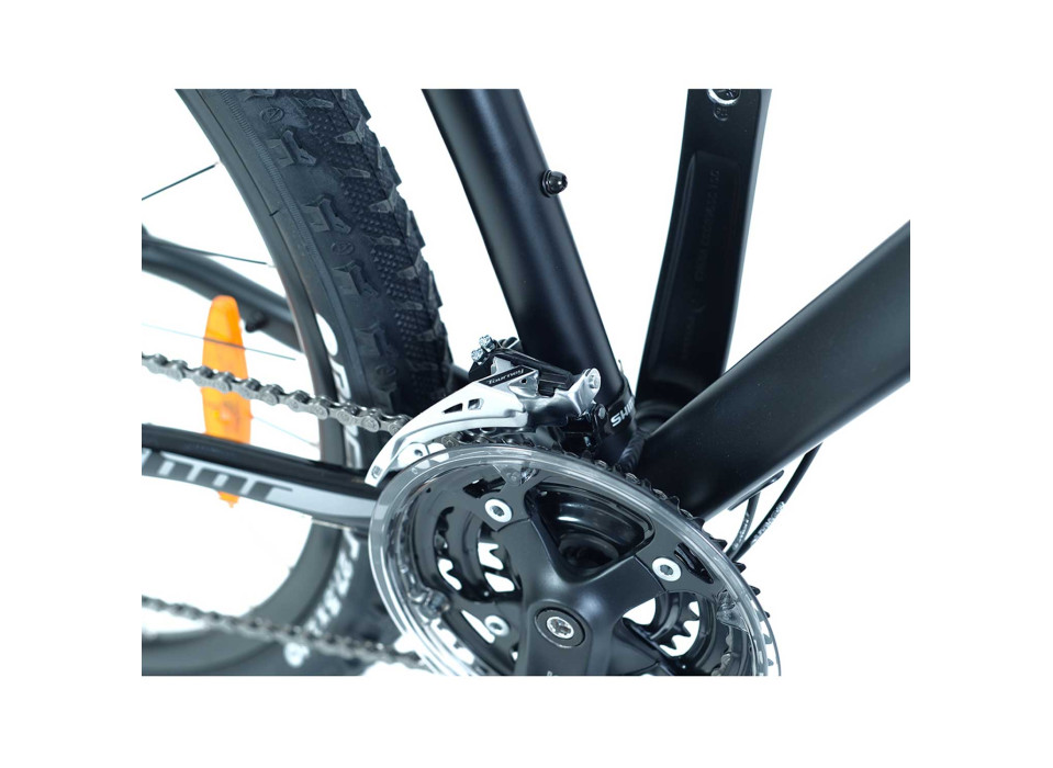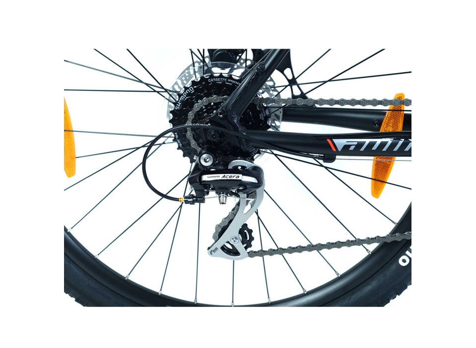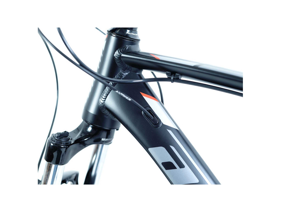 Категория кросс кантри, на колесах 27.5"x 2.10", на алюминиевой лукоподобной раме, переключатель SHIMANO Acera / манетки Altus, 24 скор., тормоз дисковый, гидравлика TEKTRO (6" диск), вилка RST Gila 27.5 ML,ход 100 mm, вес 13.8 кг