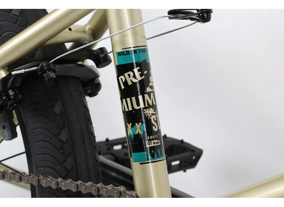 Отличный вариант трюкового велосипеда, который подойдёт для ежедневных покатух как для новичка, так и для опытного райдера. Велосипед обладает следующими характеристиками: нижняя труба рамы и шток вилки выполнена из 100% Cro-Mo сплава. Размер рамы составляет 20.5" или 21" в зависимости от модификации, высота руля 9". Шатуны трехкомпонентные 8-мишлицевые длиной 175 мм, каретка MID. Передняя и задняя звезды имеют по 25 и 9 зубцов соответственно. Обода одинарные, задняя втулка фрикостер на пром. подшипнике. На колесах установлены покрышки Premium CK шириной 2.4".