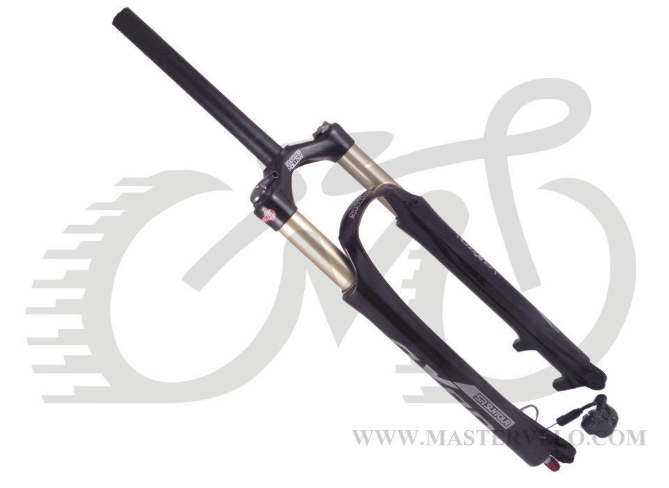 Это топовая воздушно-масляная вилка от-известного производителя SR Suntour под диск до 185 мм. Инженеры SR Suntour сделали все возможное, чтобы получить максимально легкую, но при этом достаточно прочную вилку с хорошими качествами работы. Вес вилки всего 1600 г, ход 100 мм. Вилка имеет следующие настройки:  регулировка отскока, регулировка преднагрузки, вынесенная на руль манетка блокировки вилки.Крепление колеса к вилке эксцентриком. Цвет черный.