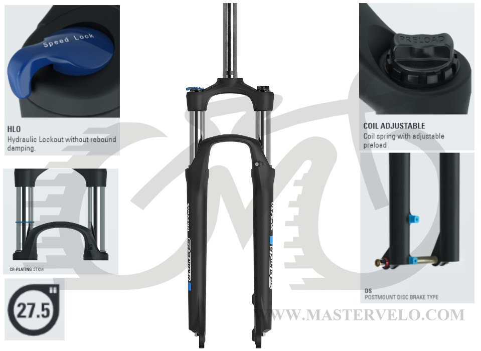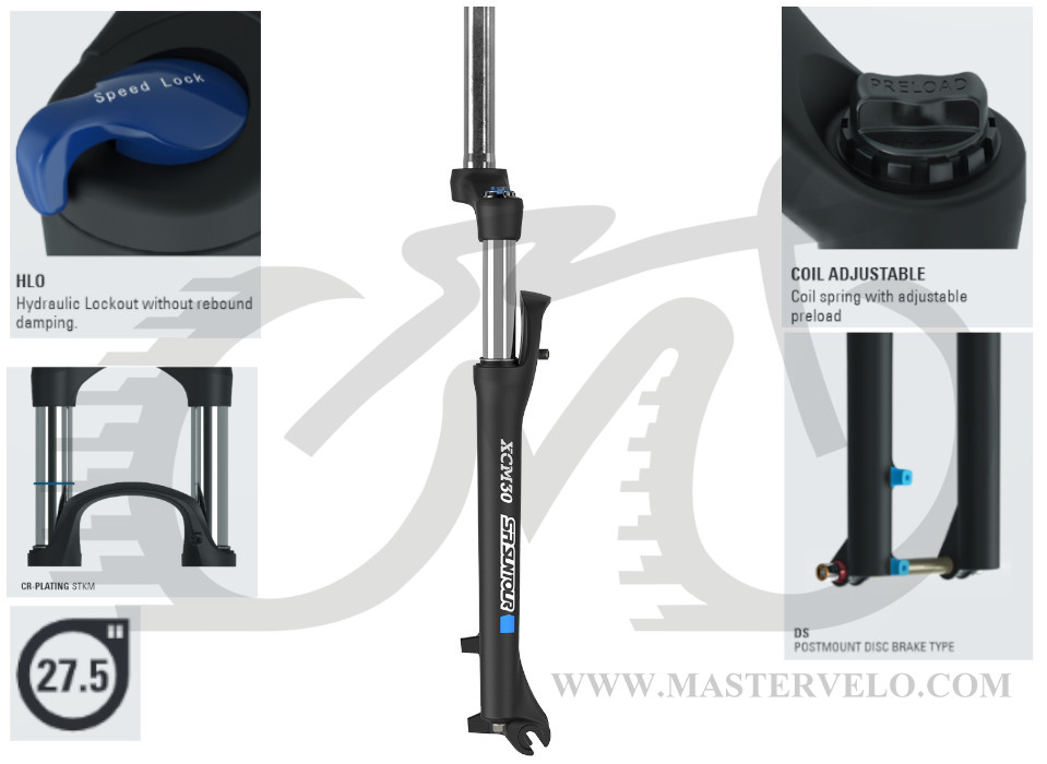 Производитель: SUNTOUR. Амортизационная вилка начального уровня для велосипедов с колесом 27.5 дюймов. Может быть установлена на горные велосипеды серии кросс-кантри начального уровня. Оснащена стальной пружиной, имеет ход 100 мм, с помощью которого любые неровности на дороге будут незаметны. Оснащена креплениями под дисковый тип post mount. Если Вам нужна простая и недорогая вилка, с полной уверенностью можете купить SUNTOUR XCM.