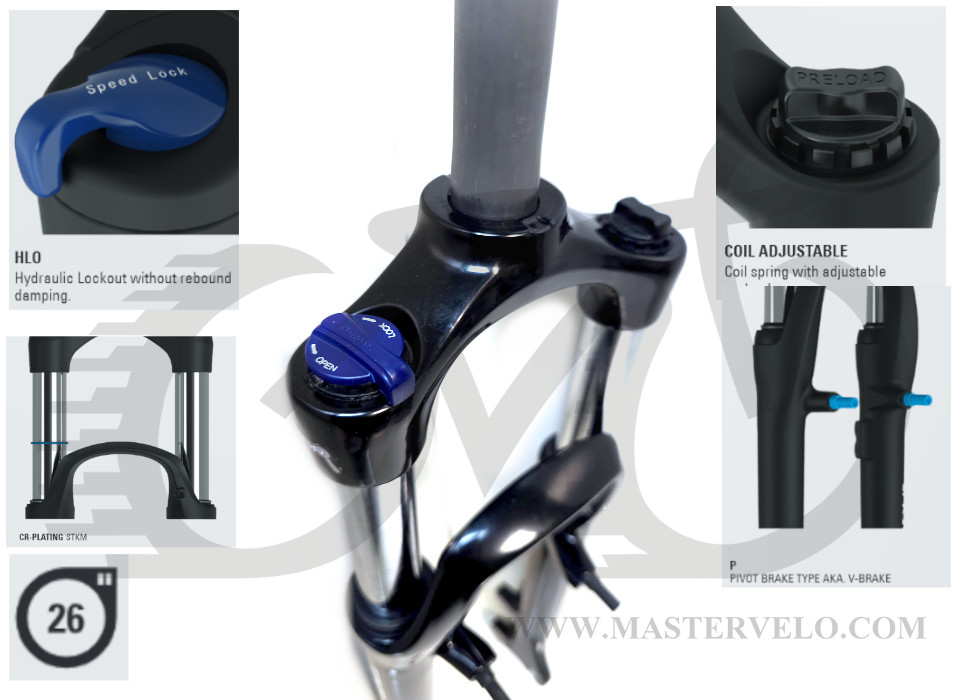 Вилка MTB 26" SUNTOUR XCM HLO диаметр - 1-1/8", черная
