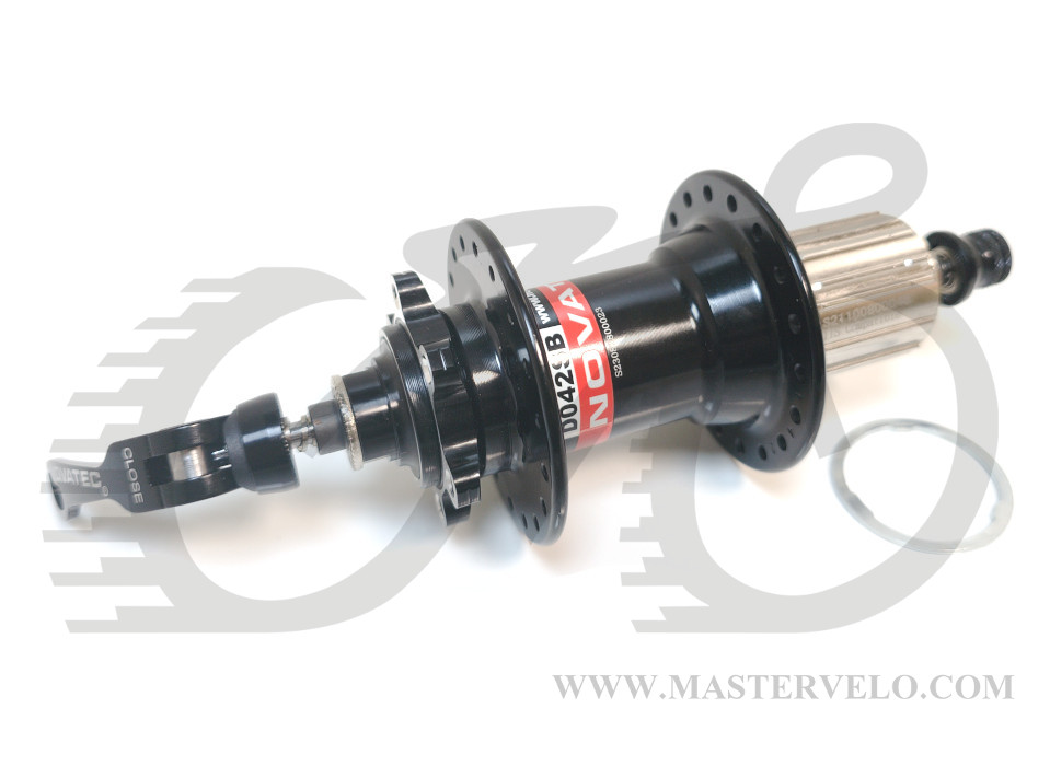 Алюминиевая задняя втулка на 4-х промышленных подшипниках для горных и кроссовых велосипедов. Стальной барабан на 3 собачки. Крепление под эксцентрик с осью 10 мм.