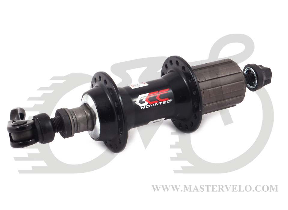 Недорогая но качественна я втулка на насыпных подшипниках от Novatec. Стандарт подшипников GCC (Шарик-конус). Количество отверстий: 32, Растояние между дропаутами:135mm, Ось:CrMo
