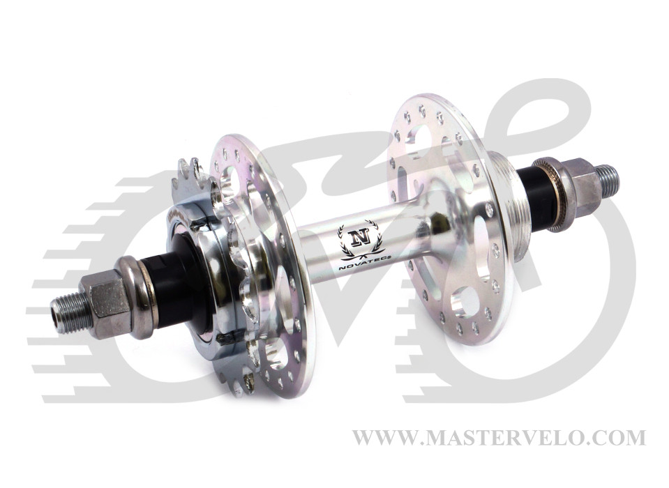 Задняя алюминиевая втулка Novatec A186SBT/Fix на двух японских закрытых промышленных подшипниках для трековых велосипедов и велосипедов класса Fix под обода на 36 спиц. Хром-молибденовая (Cr-Mo) 10-ти мм пустотелая ось, крепление к раме гайками.