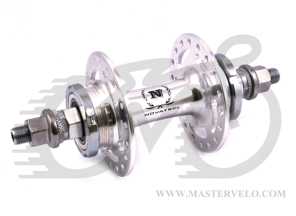 Задняя алюминиевая втулка Novatec Fix на двух японских закрытых промышленных подшипниках для велосипедов класса Fix под обода на 36 спиц со стопорными гайками для звезд. Хром-молибденовая (Cr-Mo) 10-ти мм пустотелая ось, крепление к раме гайками. Н