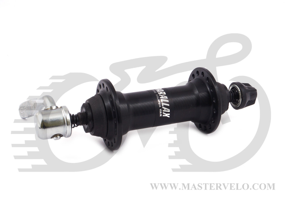 Недорогая передняя втулка под V-Brake относится к серии любительских компонентов, обладает небольшим весом и имеет хороший накат из-за качественной обработки поверхностей качения. Втулка изготовлена из авиационного алюминия со стальными вкладышами поверхностей качения, а для защиты от грязи есть резиновый пыльники. К раме втулка крепится эксцентриком. Втулка на 32 спицы. Цвет черный.