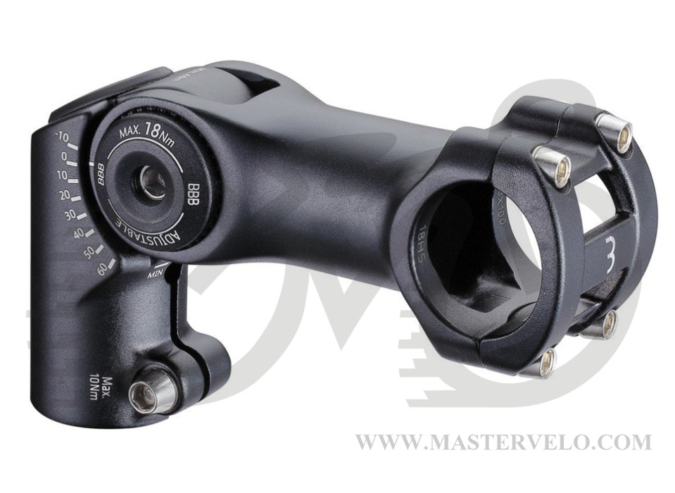 Наибольшей проблемой регулируемых выносов является быстрое появление люфта в регулировочном шарнире. Инженеры BBB установили дополнительный зажимной болт, фиксирующий шарнир, тем самым существенно продлив срок службы выноса руля BBB BHS-35 HighFix OS и сделав возможным широкий диапазон регулировки угла наклона (от -40° до +60°) без ущерба для надежности.