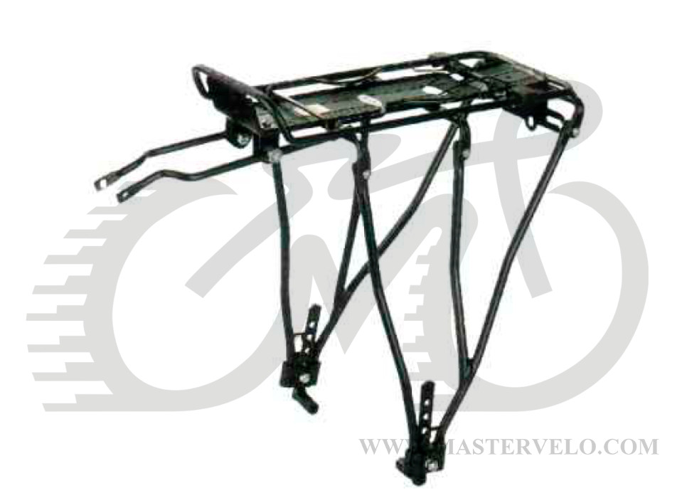 Багажник велосипедный KW-637-06 под дисковый тормоз из алюминия с боковыми стойками, имеющими плавный, обтекаемый дизайн, придающий багажнику легкость линий. Боковые стойки фиксруются 3-мя болтами к платформе багажника. Крепится модель на штатные крепления на перьях рамы велосипедов с диаметром колеса 26",27.5" 28" и 29". Регулировка по высоте осуществляется выбором необходимого отверстия на вертикальной стойке. Багажник совместим с сумкой-штанами. Предусмотрено крепление заднего габаритного фонаря. Вес 1060 грамм.