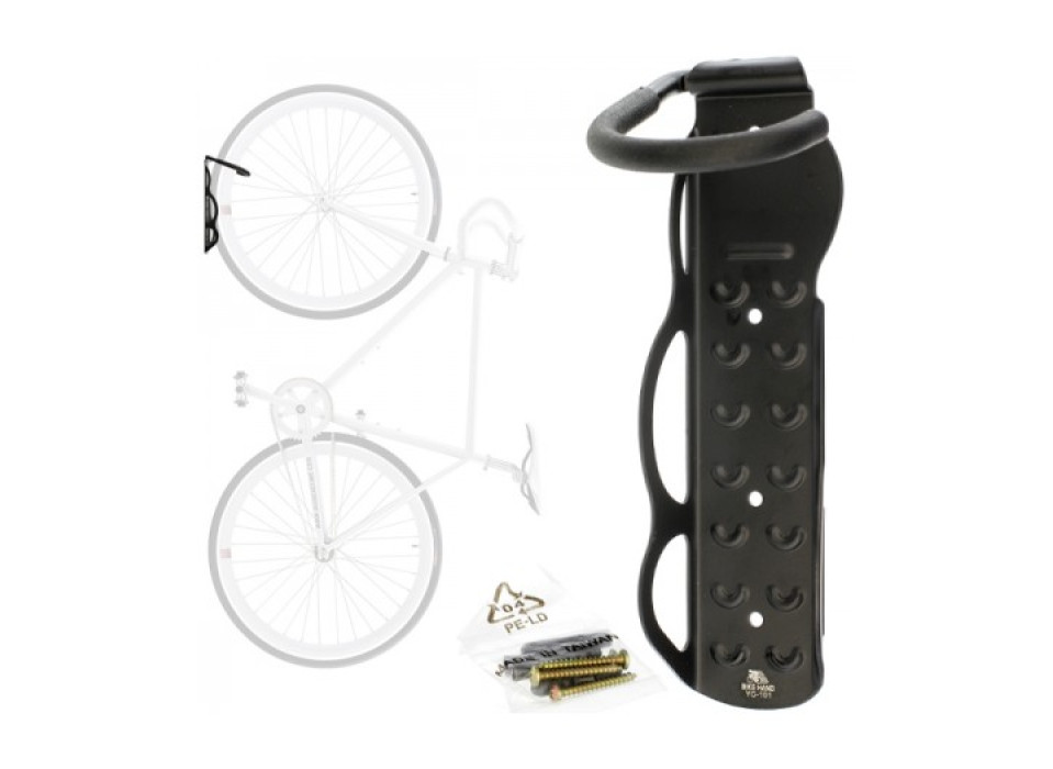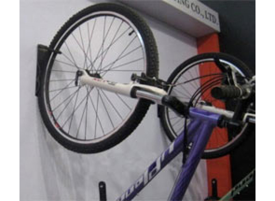 Крюк для вертикального подвешивания велосипеда за переднее колесо. Крепится на 4 самореза с дюбелями.