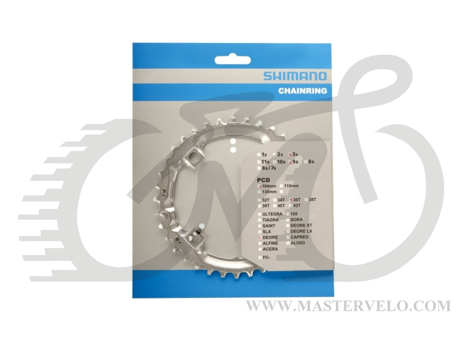 Зірка шатунів Shimano FC-M510 DEORE, 36зуб. срібл. 9-швидк. PCD 104mm (Y1DS98200)