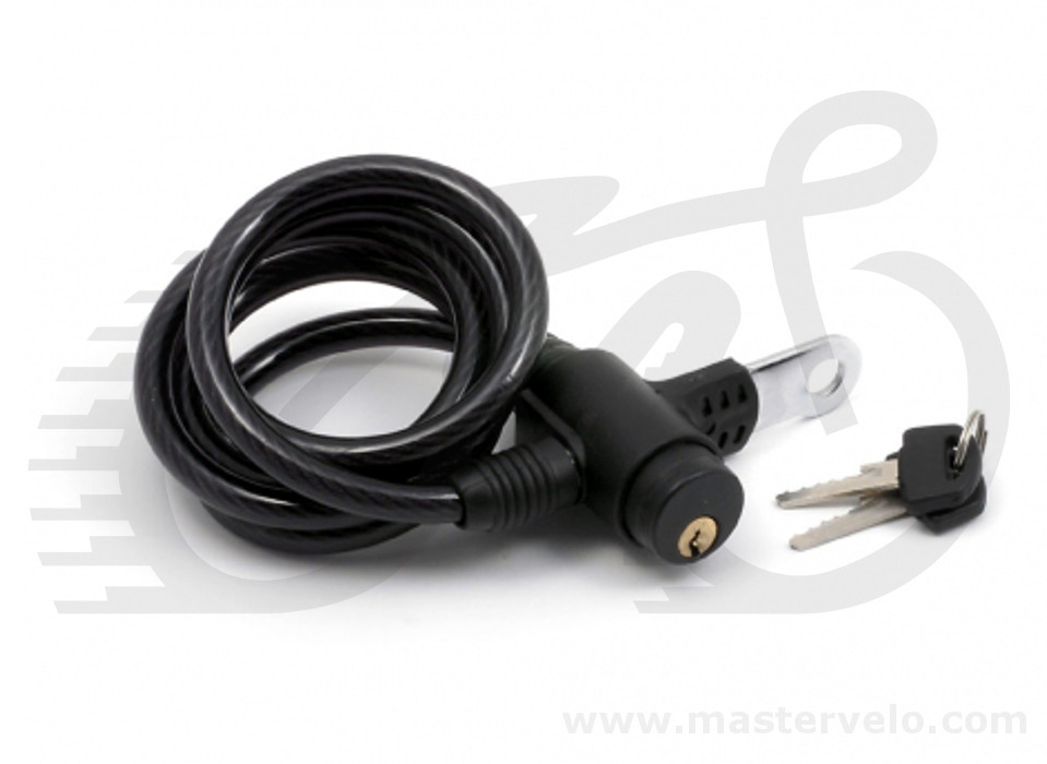 Замок ASL-51 закрывается на ключ , стальной тросс имеет спиральную форму длиной 1000 мм и диаметром 8 мм.