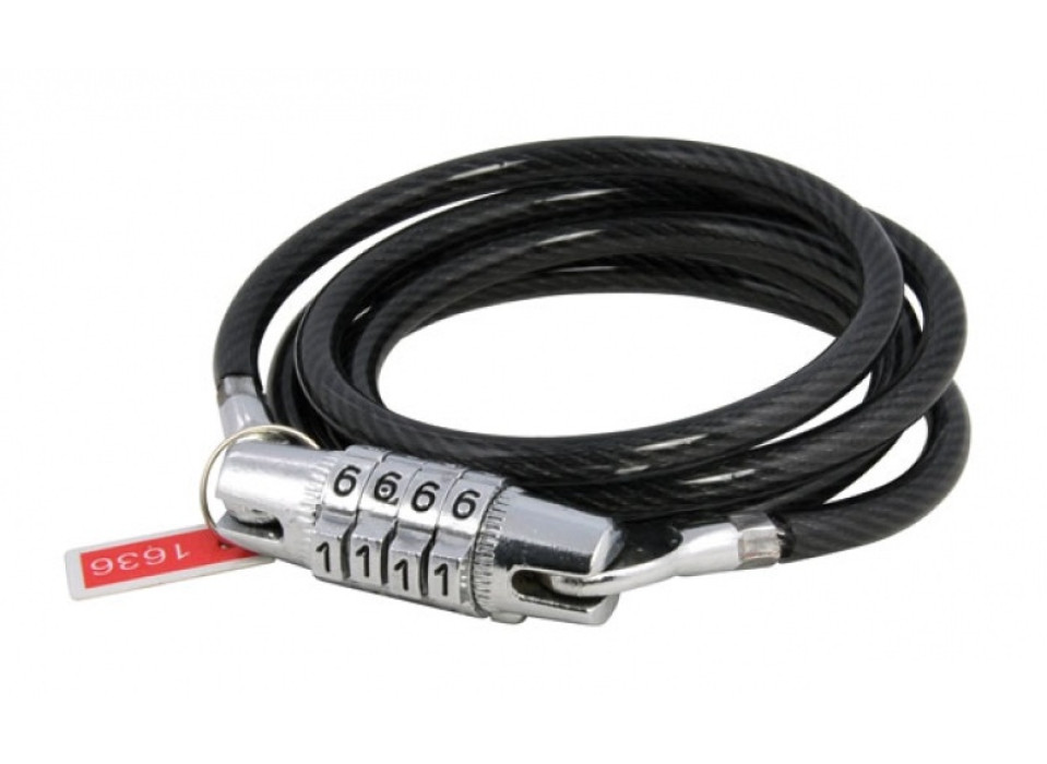 Бюджетный кодовый замок Longus. Стальной трос. Код указан на упаковке, не изменяемый. Вес: 123г.
