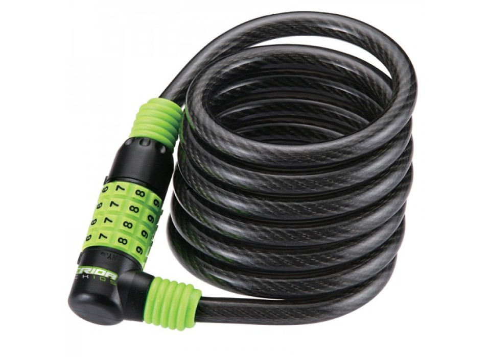 Кодовый замок Merida. Стальной тросс спиральной формы, длинной 1800 мм и диаметром 9 мм, позволит сцепить раму, два колеса и место парковки.
