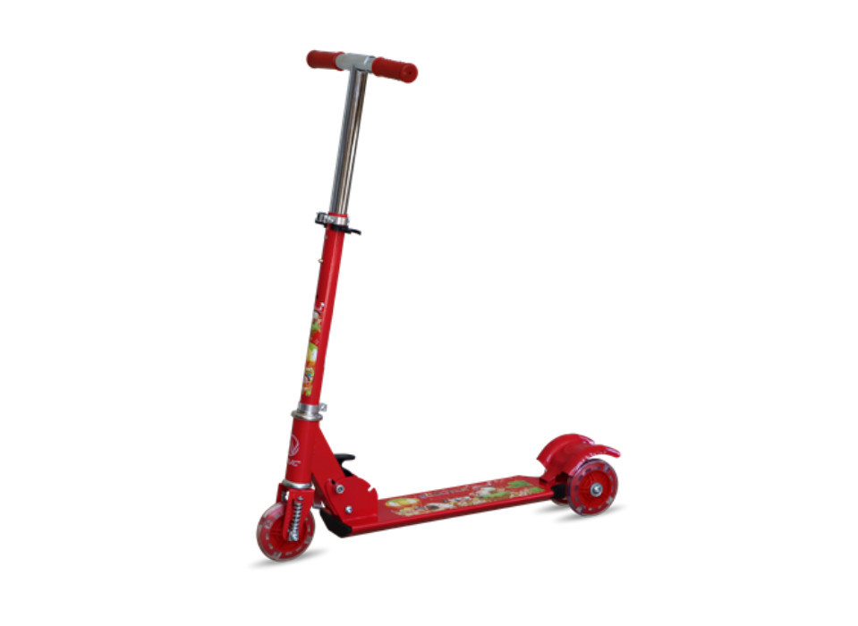 Самокат складной VNC SC-008-RD (платформа сталь., колеса 95мм, задние сдвоенные, ножной торм.), красный