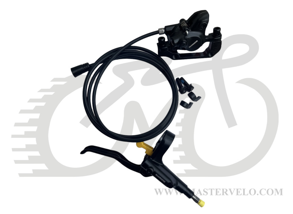 Дисковый тормоз МТ200. Состоит из тормозного рычага BLMT200 и суппорта BRMT200 с адаптером, соединенным шлангом BH59-SS.