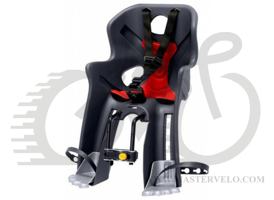 Переднее сиденье для перевозки детей до 7 лет, максимальный вес 15 кг. Крепление совместимо с большинством типов велосипедов. Мягкая прокладка придаст максимум комфорта при езде. Кресло укомплектовано надёжными ремнями безопасности. Сама форма сидения обезопасит ребёнка от боковых ударов. Имеет Европейский сертификат качества TUV.