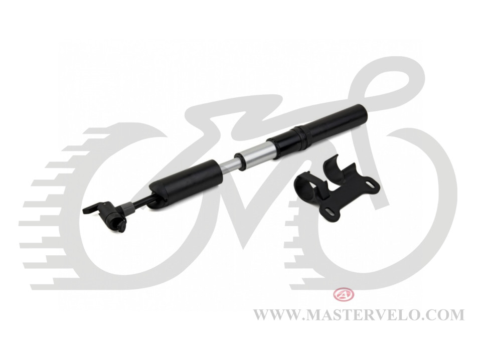 Насос мини ручной AAP Pipe телескопический, с выдвижным шлангом длинной 140 мм , с головкой под AV & FV вентили. Из алюминия. Макс. давление 100 psi (0,69 МПа). В комплекте крепление к раме с контрольной лентой, диаметр 27 мм, длина 180 мм, вес 135 грамм.