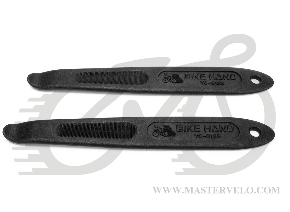 Bike Hand YC-3123 - прочные надежные бортировочные лопатки черного цвета. Конструкция представляет собой пластмассовую лопатку с крючком. Не царапает обод. Занимает мало места в поясной сумке. В комплекте 2шт.