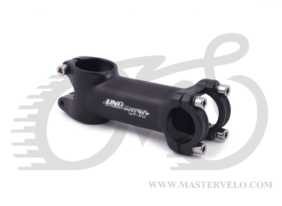 Вынос руля Kalloy-Uno. Материал: алюминий. Стандарт: шток 1 1/8", руль 25,4 мм. Угол подъема: 7 град. Длина: 90 мм. Цвет: черный.