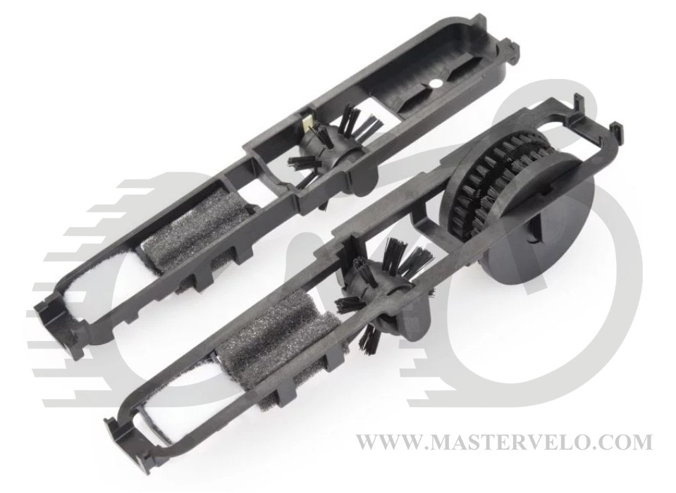 Комплект сменных щеток и поролоновых грязесъемников, который предназначен для установки в цепемойку СМ-5. Включает в себя две вращающиеся щетки, две губки и две впитывающие подушечки, уже установленные в составном картридже