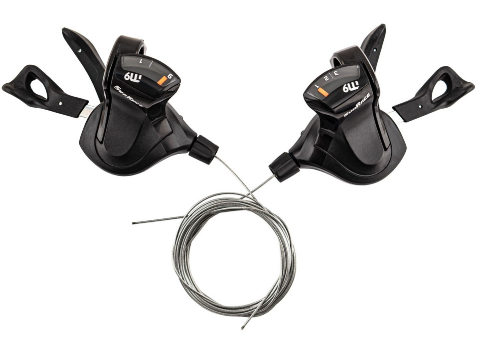 Легкие ручки переключения SUN RACE M930 триггерного типа. Триггерная манетка – это блок, располагающийся на руле рядом с ручкой, содержащий храповой механизм и два рычага. Одним рычагом цепь перемещается в одну сторону, другим – в обратную. Конструкция манеток достаточно удобна для использования их даже в жестком кросс-кантри.