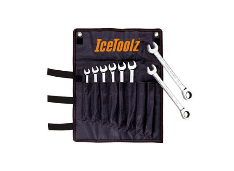 Производитель: ICE TOOLZ. Профессиональный набор рожково накидных ключей, в комплект входят 8/9/10/11/12/13/14/15мм. Накидная сторона оснащена особой трещоткой, которая предает еще больше комфорта при работе. Изготовлен из спец. инструментальной стали, что обеспечивает надежность и долговечность при эксплуатации.