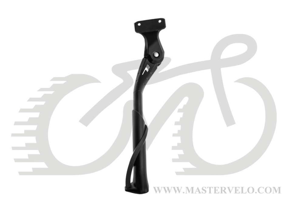 Міцна алюмінієва підніжка з кріпленням на підставці. Відстань між отворами кріплення - 40 мм (від центру до центру). Підходить для важких велосипедів з колесами 24-28 ", таких, як електровелосипеди. Легке регулювання довжини за допомогою гвинта на нозі підставки.