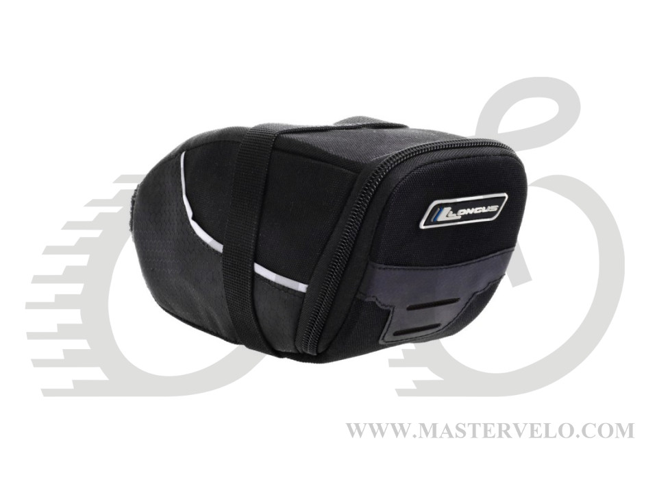 Класична підсідельна сумочка з довгою блискавкою на задній частині сумки, що відкриває великий отвір, дозволяючи зручно розміщати більш великі предмети, а кулон на блискавці значно полегшує відкривання та закривання. Внутрішня сітчаста кишеня ідеально підходить для зберігання грошей або дрібних предметів. Сумка кріпиться до сідла та підсідельного штира за допомогою трьох довгих застібок на липучках. Світловідбиваючий шов з обох сторін збільшує видимість в умовах слабкого освітлення. Сумка виготовлена з міцного і стійкого поліестеру 600D, що забезпечує тривалий термін служби навіть при частому використанні.