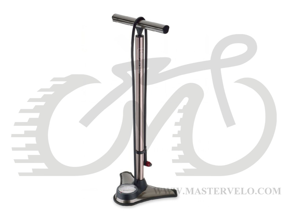 Насос имеет комбинированную конструкцию из стали и алюминия. Снизу установлен манометр, показывающий давление в двух единицах PSI и BAR, с крупными цифрами. Универсальный переставной клапан получил новую конструкцию, благодаря которой замена насадки происходит в разы легче. Длинный шланг позволяет производить подкачку с удобной позиции. Большая лапа и широкая ручка для уверенной и удобной подкачки.