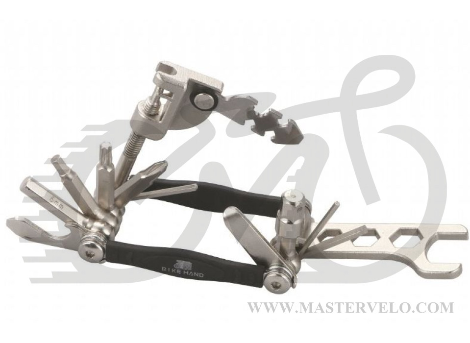 Универсальный набор шестигранников. Незаменим как при мелком ремонте в дороге, так и при серьезном стационарном ремонте. Набор ключей имеет множество предметов: складной набор ключей YC-290: 2 2.5 3 4 5 6 8 мм шестигранники, отвёртка под крест, ключ Т25, лопатка для бортировки колёс, выжимка цепи, нипельные ключи 14G 15G (4,3 mm Shimano), гаечный ключ на 15мм.