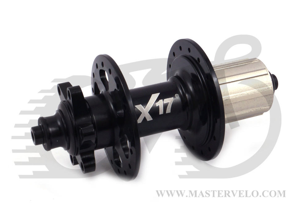 Задняя облегченная велосипедная втулка X17 на 4-х высококачественных промышленных подшипниках закрытого типа. Втулка имеет алюминиевый корпус, барабан и ось изготовлены из алюминиевого сплава 7075. Расстояние между дропаутами - 135 мм. Вес 0,237 кг.