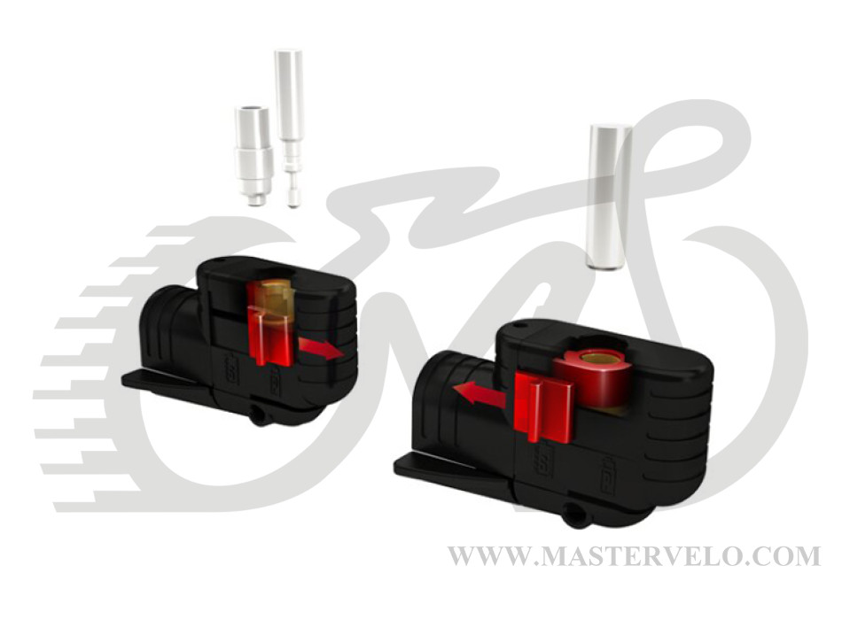 Шланг с универсальным клапаном, который позволяет без труда накачать любой велосипедный вентиль. Для переключениями между типами вентилей не нужно разбирать клапан. Для этого достаточно просто передвинуть переключатель в необходимое положение.