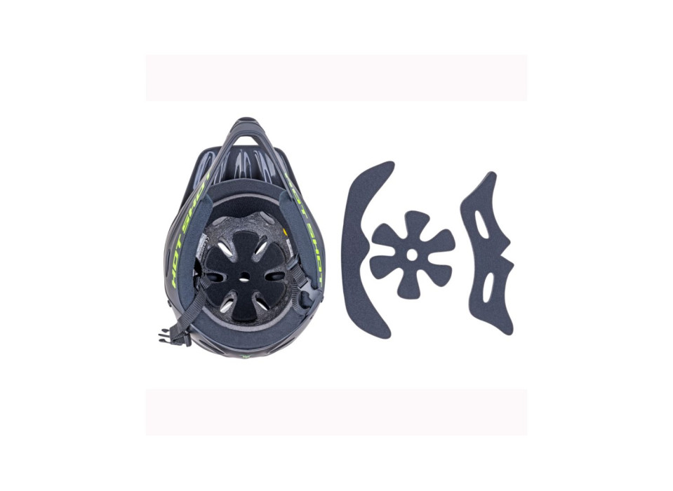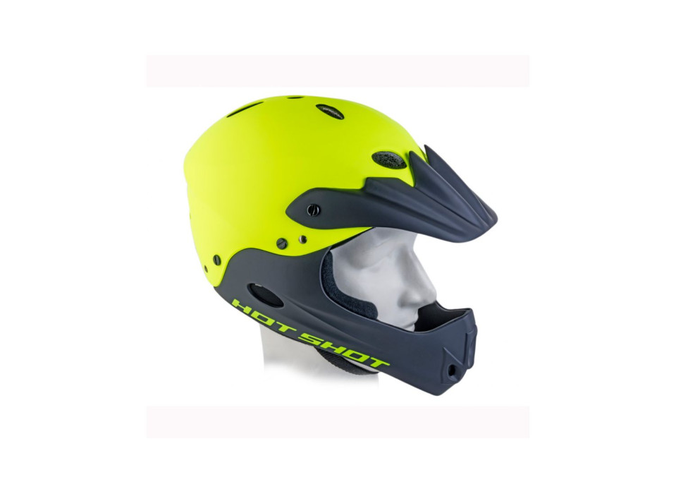 Шлем Hot Shot Inmold с полной защитой лица с покрытием Hard Shell. Подходит для активных видов спорта ( велосипед - Street/BMX/Enduro, ролики, скейт, и т.д.). Сьемный козырек и передняя защита адаптирует шлем для различных видов спорта. Вес 640 грамм.