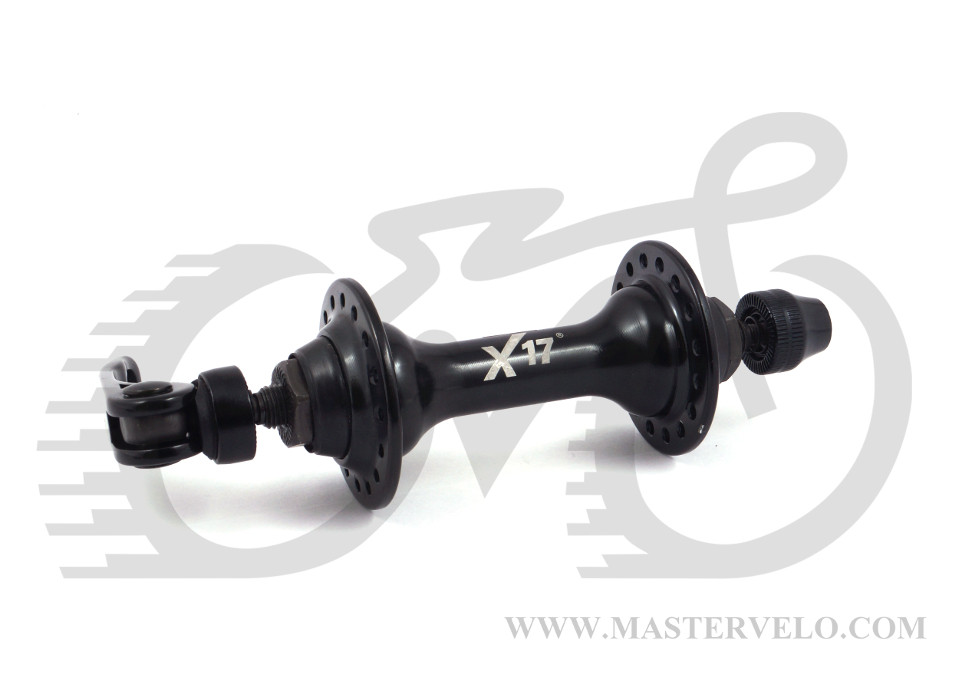 Передняя втулка для шоссейных велосипедов. Корпус - анодируемый алюминий с отверстиями под 32 спицы. Подшипники насыпные, регулируемые по системе конус-чашка. Втулка с резиновым двойным пыльником для защиты от грязи и влаги. Ось - хром-молибден. Втулка крепится к раме эксцентриком.