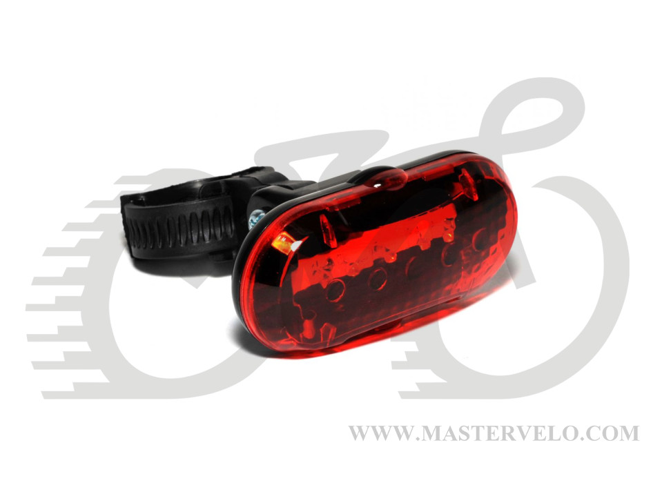 Задний фонарь CYCLONE TL-20 на 5 светодиодов, с двумя режимами: постоянного свечения и мигания. Батарейки в комплект не входят. Универсальное крепление. Большая красная сферическая линза . Вес 60 грамм.