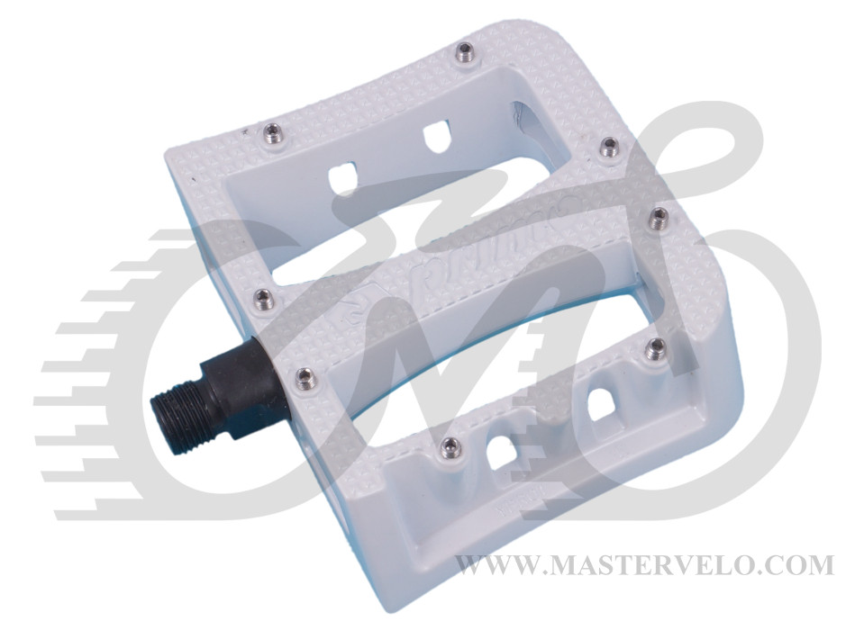 Педали Primo Stricker (19-161) - магниевый литой корпус со сменными шипами из нержавеющей стали по 8 шт. на одну сторону. Хром-молибденовая анодированная ось, промышленный подшипник, антивандальное покрытие, выштампованный логотип на корпусе. Цвет белый.