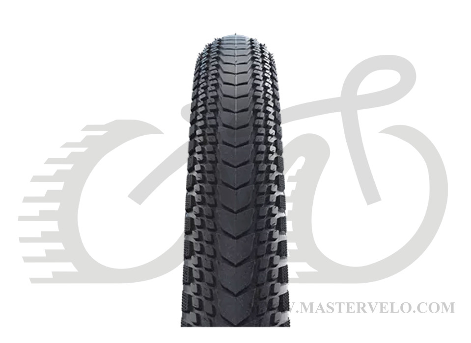 Рисунок протектора состоит из центральной дорожки, которая обеспечивает отличный накат, а два вида блоков по бокам протектора удерживают велосипед при поворотах и не дают ему уйти в занос.