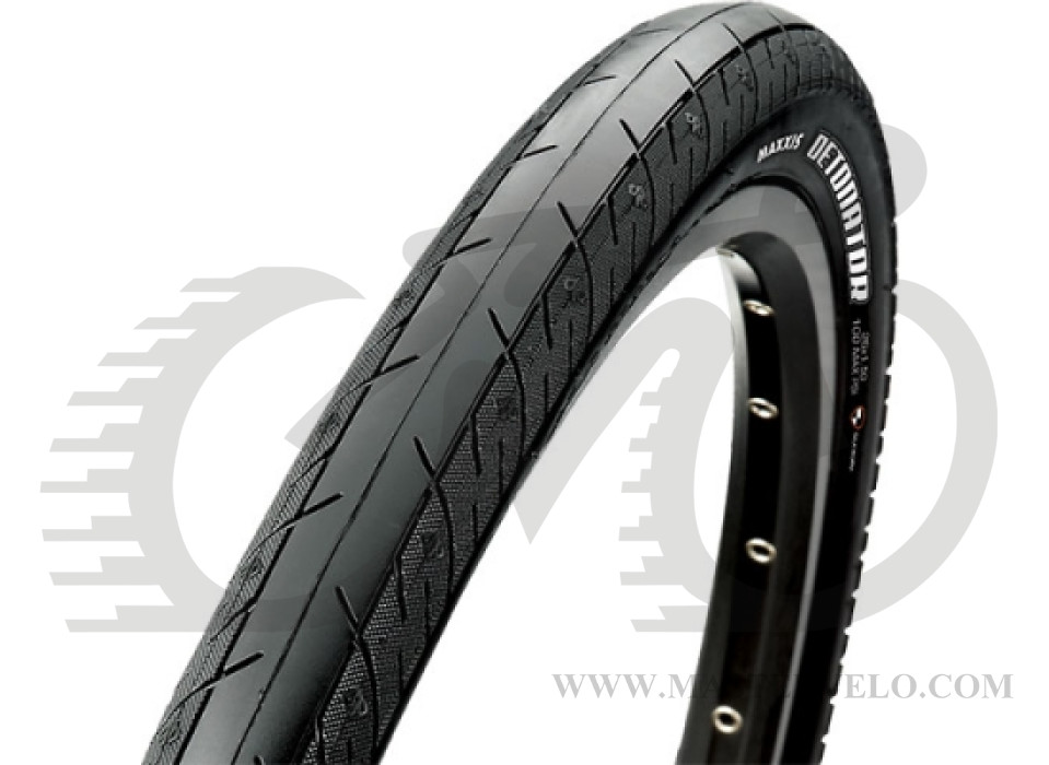Maxxis Detonator – это тренировочная покрышка с гоночным происхождением. Она обладает двойным компаундом, и является устойчивой к износу. Мягкий боковой компаунд с добавлением кремния обеспечивает отличное сцепление на любых дорожных покрытиях. А центральный жесткий компаунд достаточно прочен, чтобы покорить многие километры дорог.