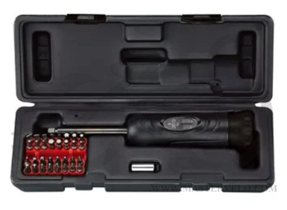 Динамометричний ключ Ice Toolz E213 дає можливість точно обмежити зусилля, що докладається для затягування кріплення. Інструмент містить бити Hex, Pozi®, Phillip, Slot, Torx® (усього 32 шт) і адаптер 1/4".