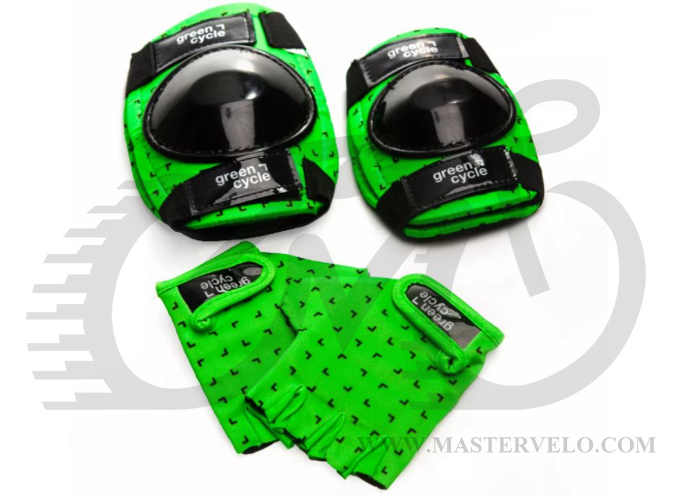 Комплект від Green Cycle складається з двох налокітників, двох наколінників і пари рукавичок. Захист фіксується за допомогою липучок, тому дитина з легкістю одягнеться сама. Комплект виконаний такому ж дизайні, що і дитячий шолом тієї ж серії.