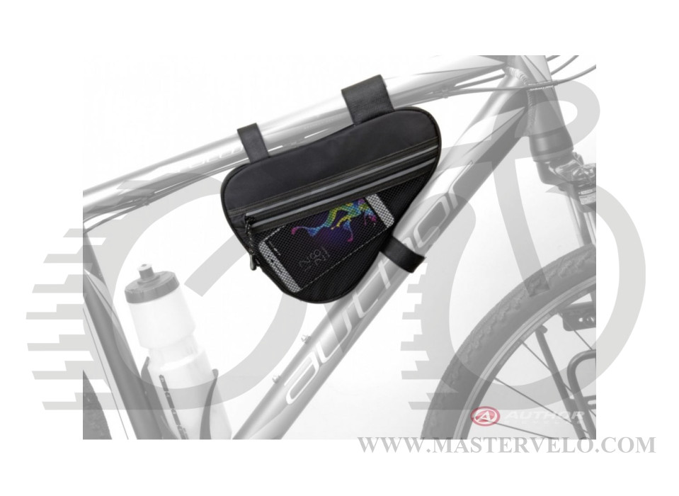 Cумка под раму Author A-R213 - универсальная сумка с одним основным отделением и одним сетчатым карманом. Создана для длительного использования. Имеет универсальную и прочная фиксациюна липучке, подойдёт для любых типов и размеров рам.